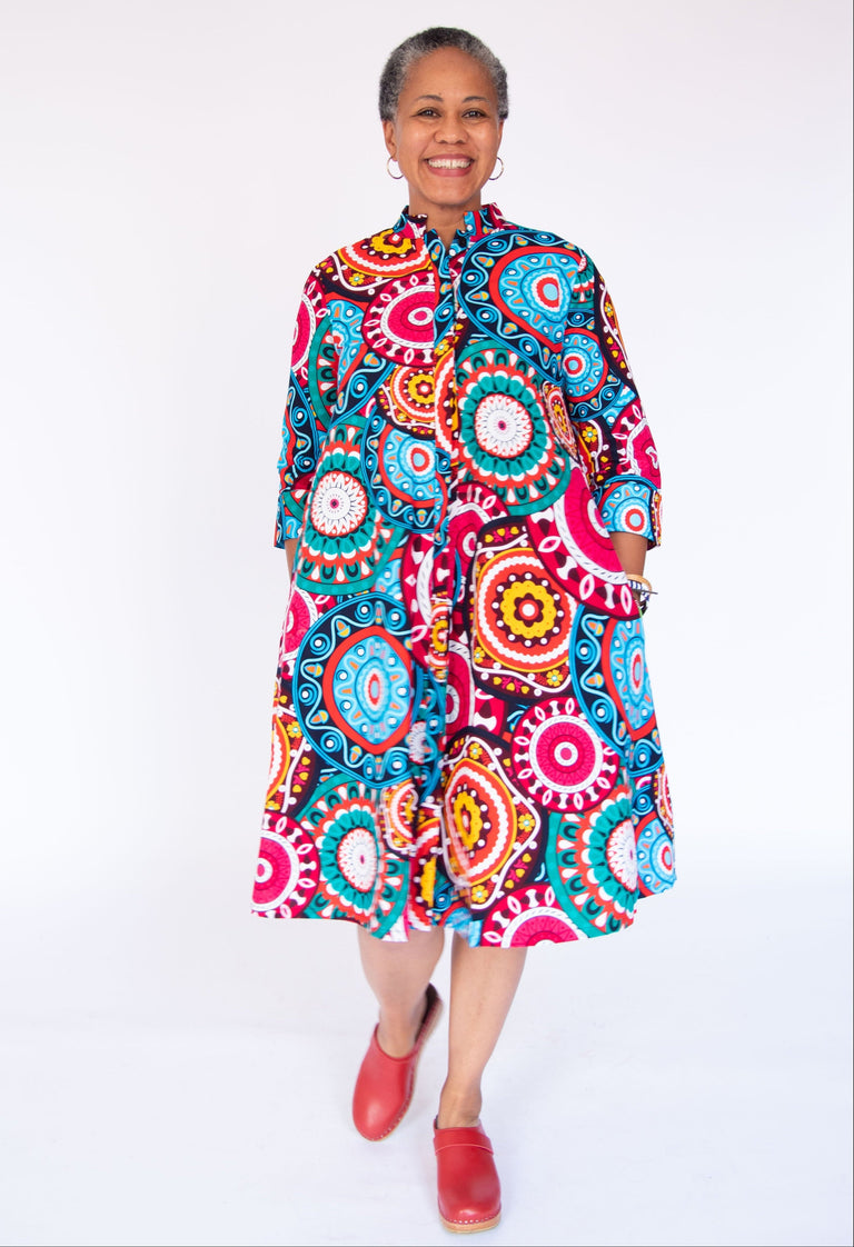 We work with an incredible network of fabric vendors in Dar es Salaam and Nairobi to source textiles. Over the years and many hundreds of prints, we've learned a lot about how to select fabrics. We truly have these women to thank for sharing their knowledge and trust, and in doing so, creating such a mutually supportive experience. Learn more about our process and our vendors here!