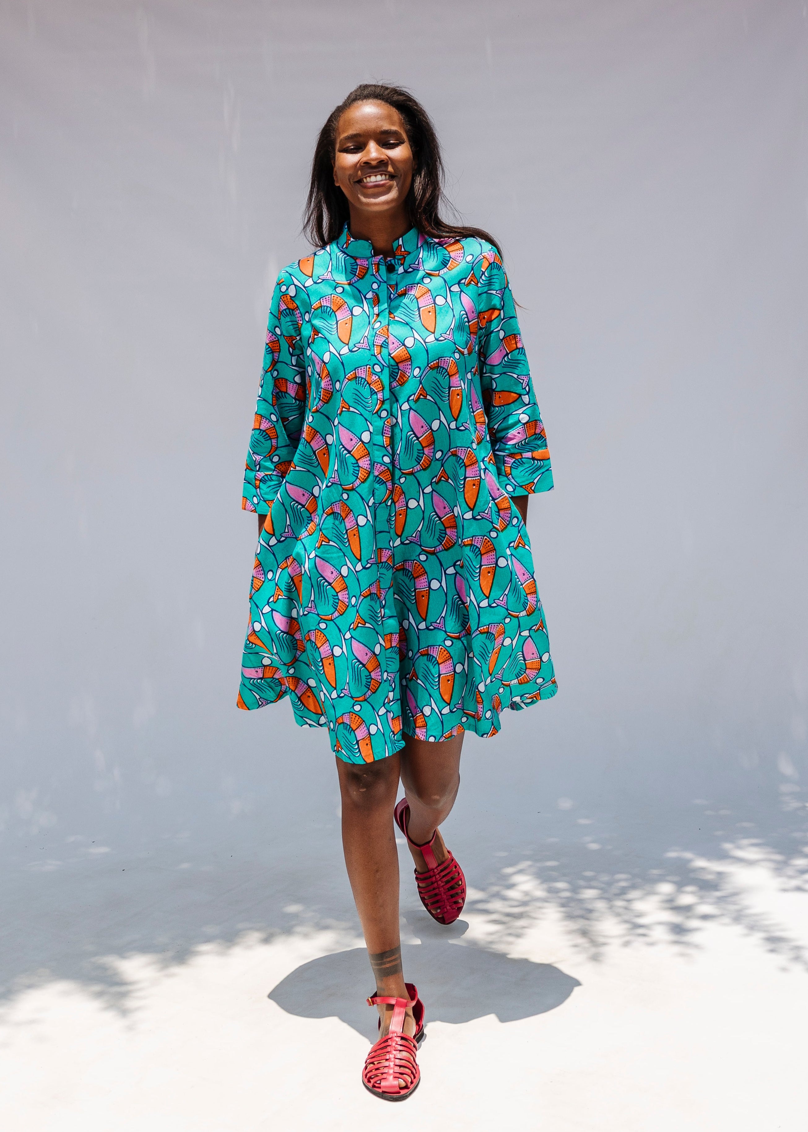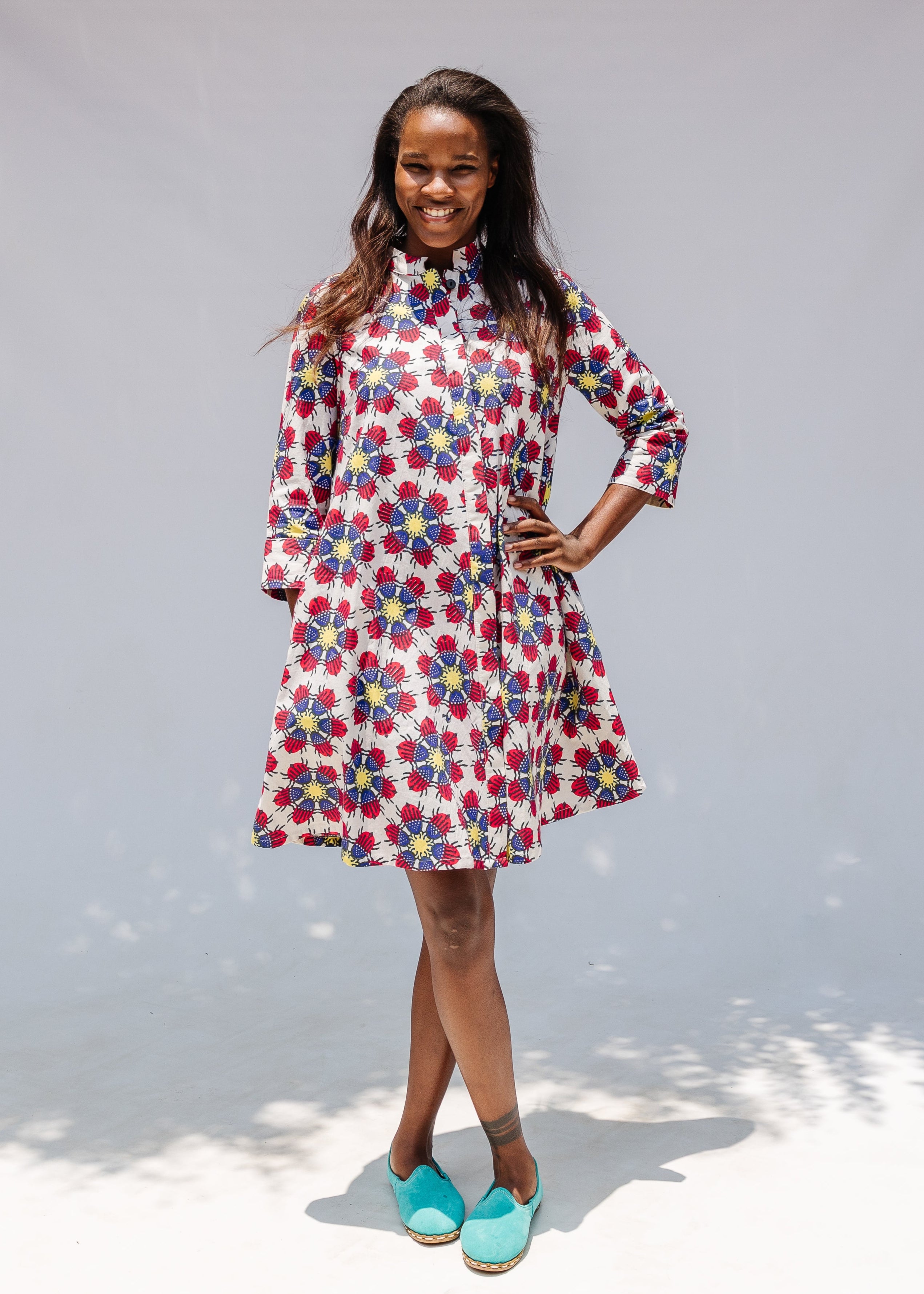 This means that not only do we know the smallholder farmers who grow the cotton used to make our dresses, but also that we have access and input over the process of spinning that cotton into yarn, weaving that yarn into fabric and printing that fabric for clothing. It means accountability for our team, knowing with certainty that the working conditions for the production of our fabrics are healthy and safe, and that each worker is paid a fair and living wage. It means that we can work directly with textile artists to create prints that we think you'll love, and provide a direct forum for them to share the meaning or inspiration behind their designs. Fundamentally and most importantly, it means that we're taking control of our supply chain so that we can ensure fair and safe work forevery single person who helped make our fabric.