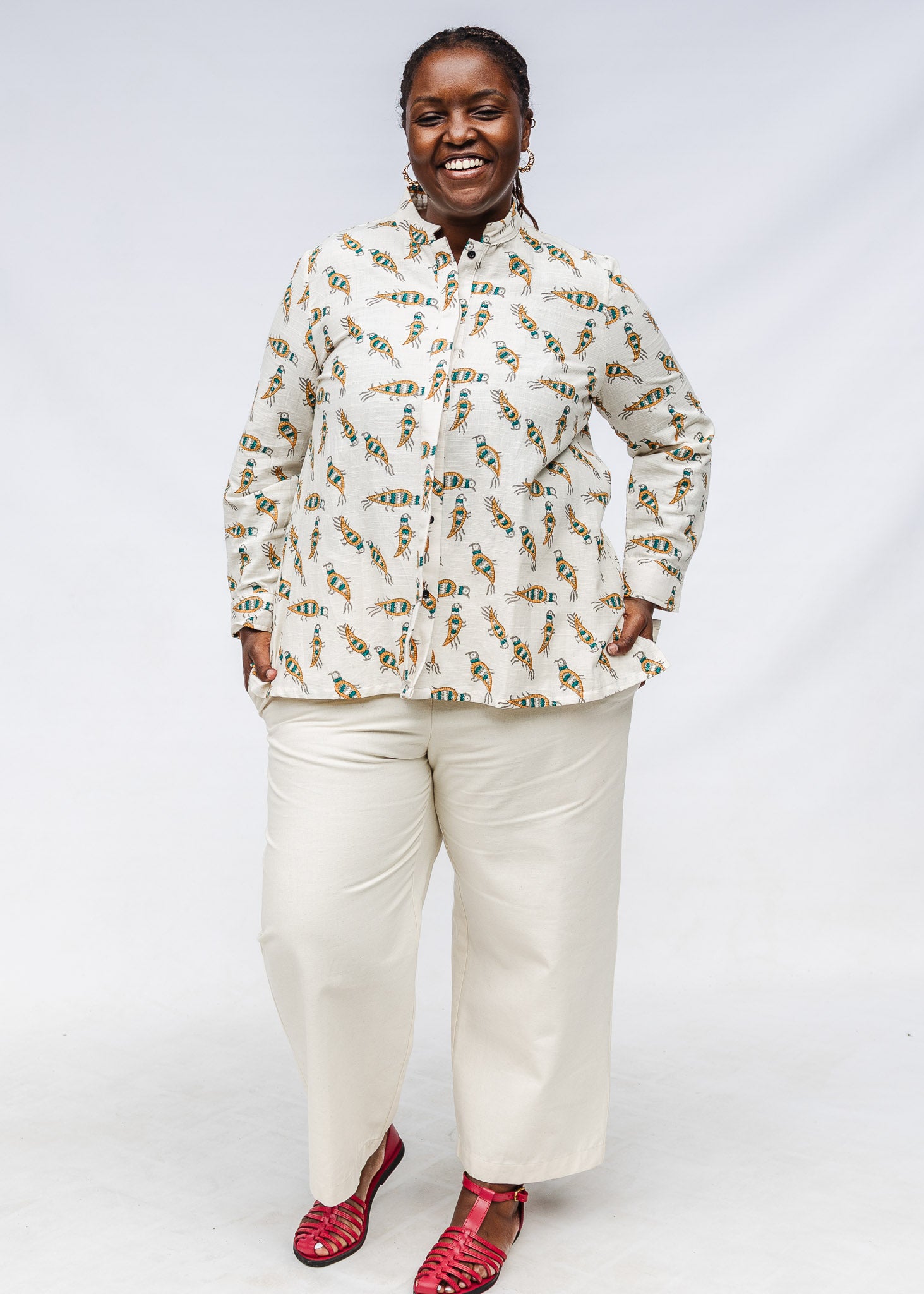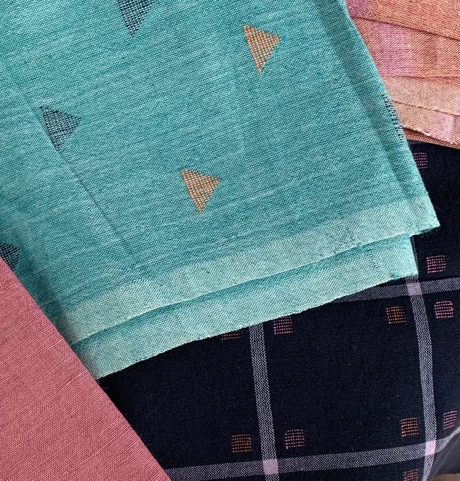 In order to highlight the depth and complexity of these hand-spun and hand-woven fabrics, we wanted to explore a few spheres of texture, as well as be able to share several of the many textile traditions in the region. Since we started working with Sasha, we’ve produced several collections of textiles together ranging over five different weaving traditions, including a luminous cotton-linen blend, a breathable natural cotton khadi, a delicate jamdani, a fun and durable discharge textile, and finally (currently!) a selection of hand-woven ikats that we’re very excited about!