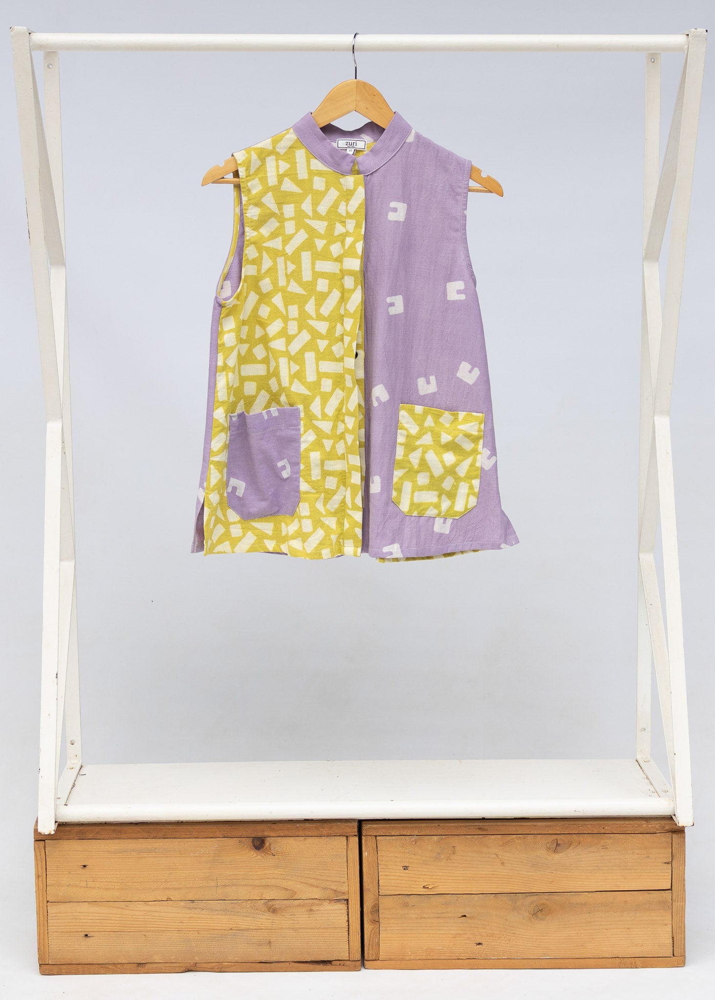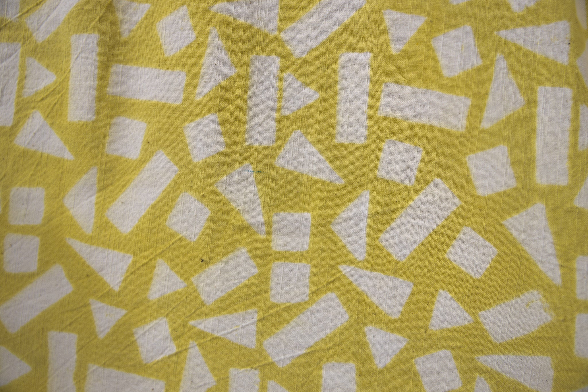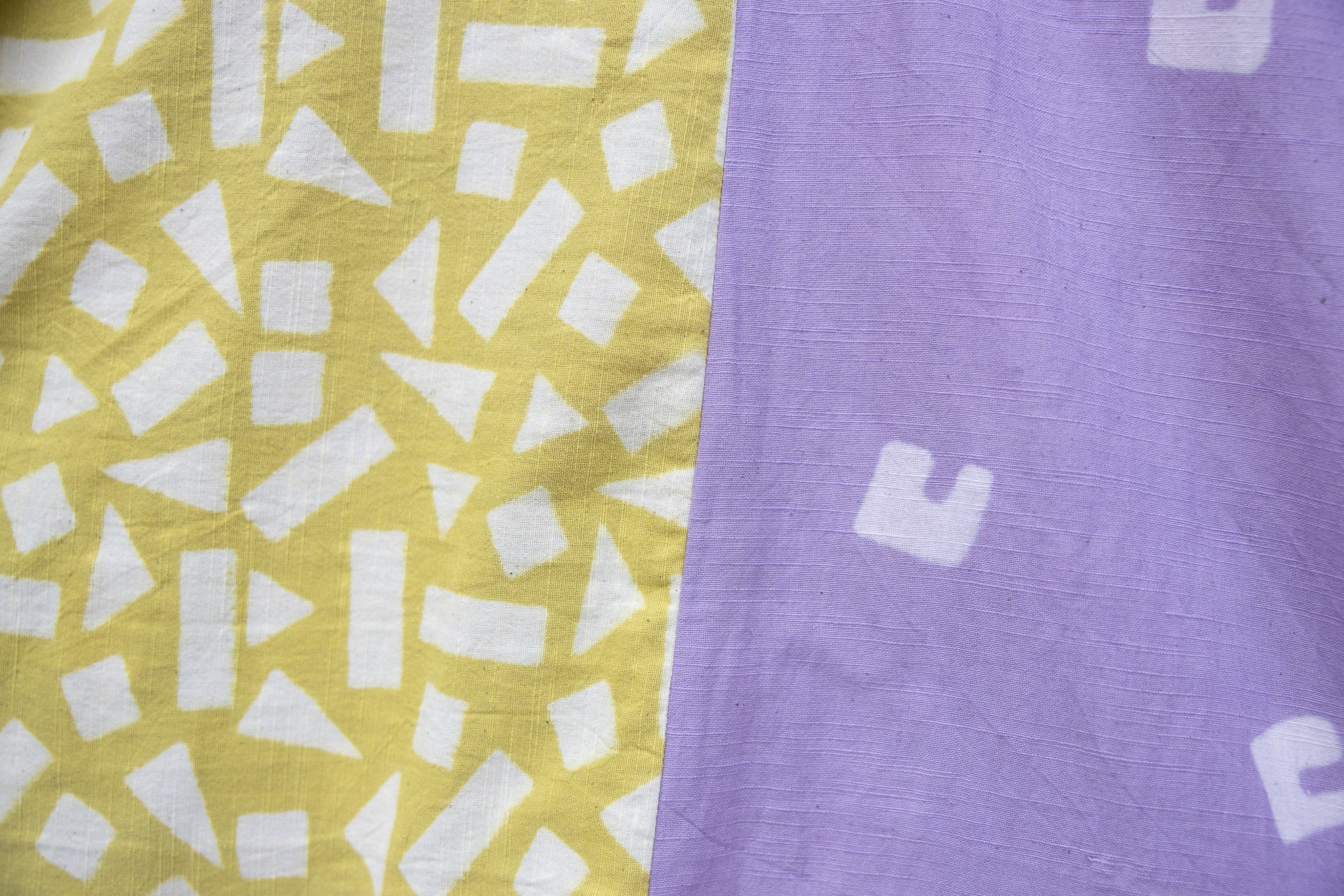 Discharge prints apply a design to dyed cotton fabric by printing a color-destroying agent, to bleach out a white or light pattern on the darker coloured ground. It’s a fun way to play with design and creates a look that is both modern and chic!