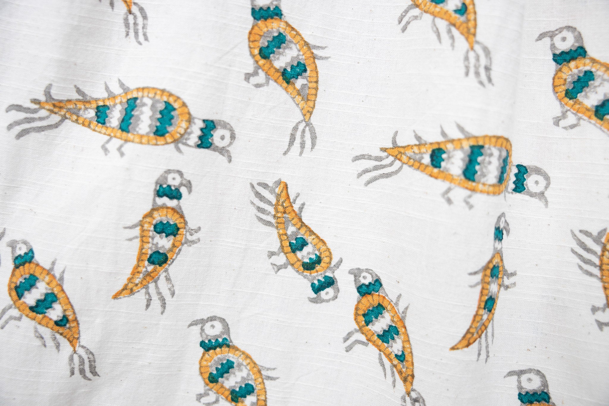Jamdani fabric is a light, embroidered muslin fabric perfect for the fair-weather months.  It’s a 100% cotton textile that is washable, wearable, durable and breathable.