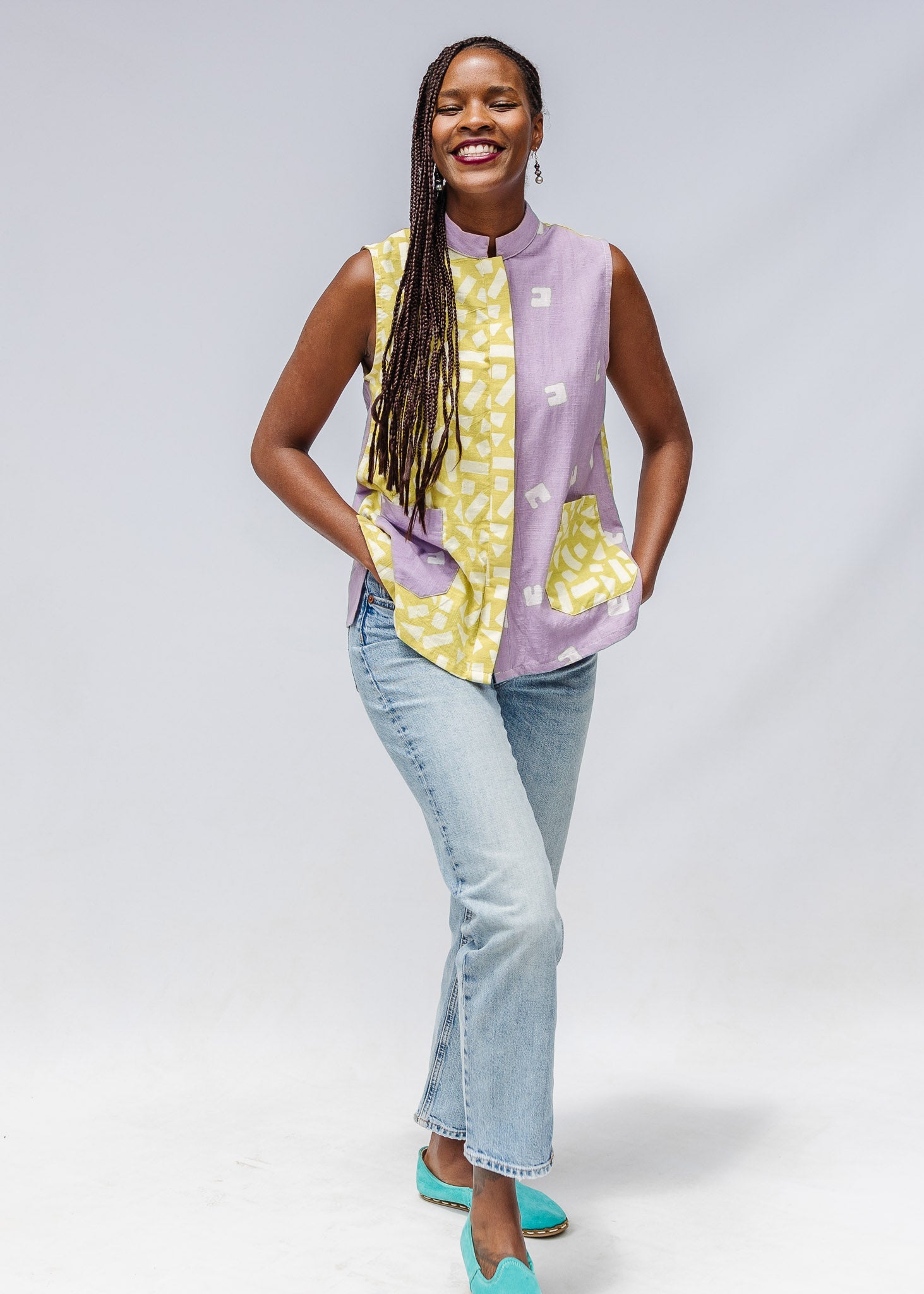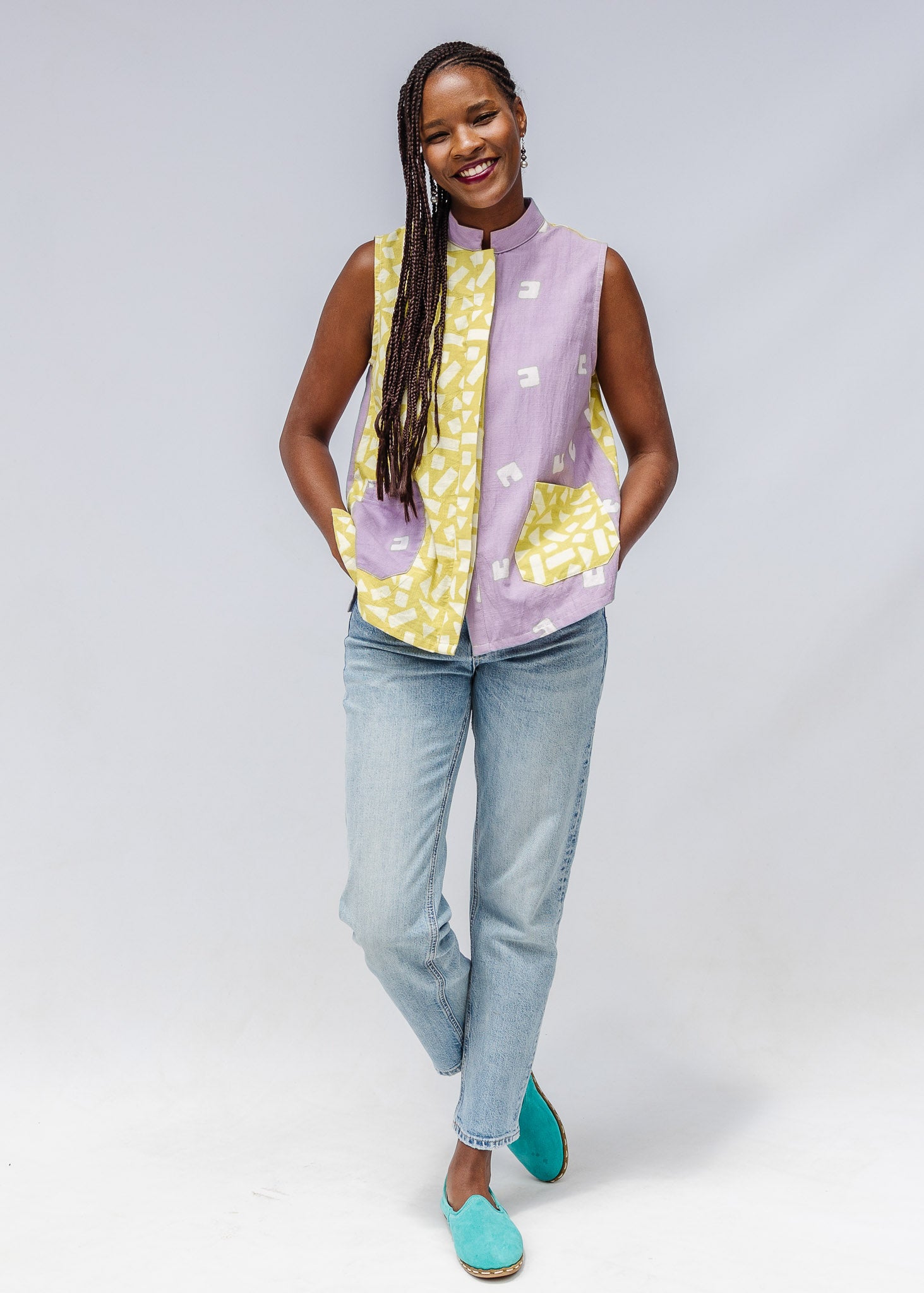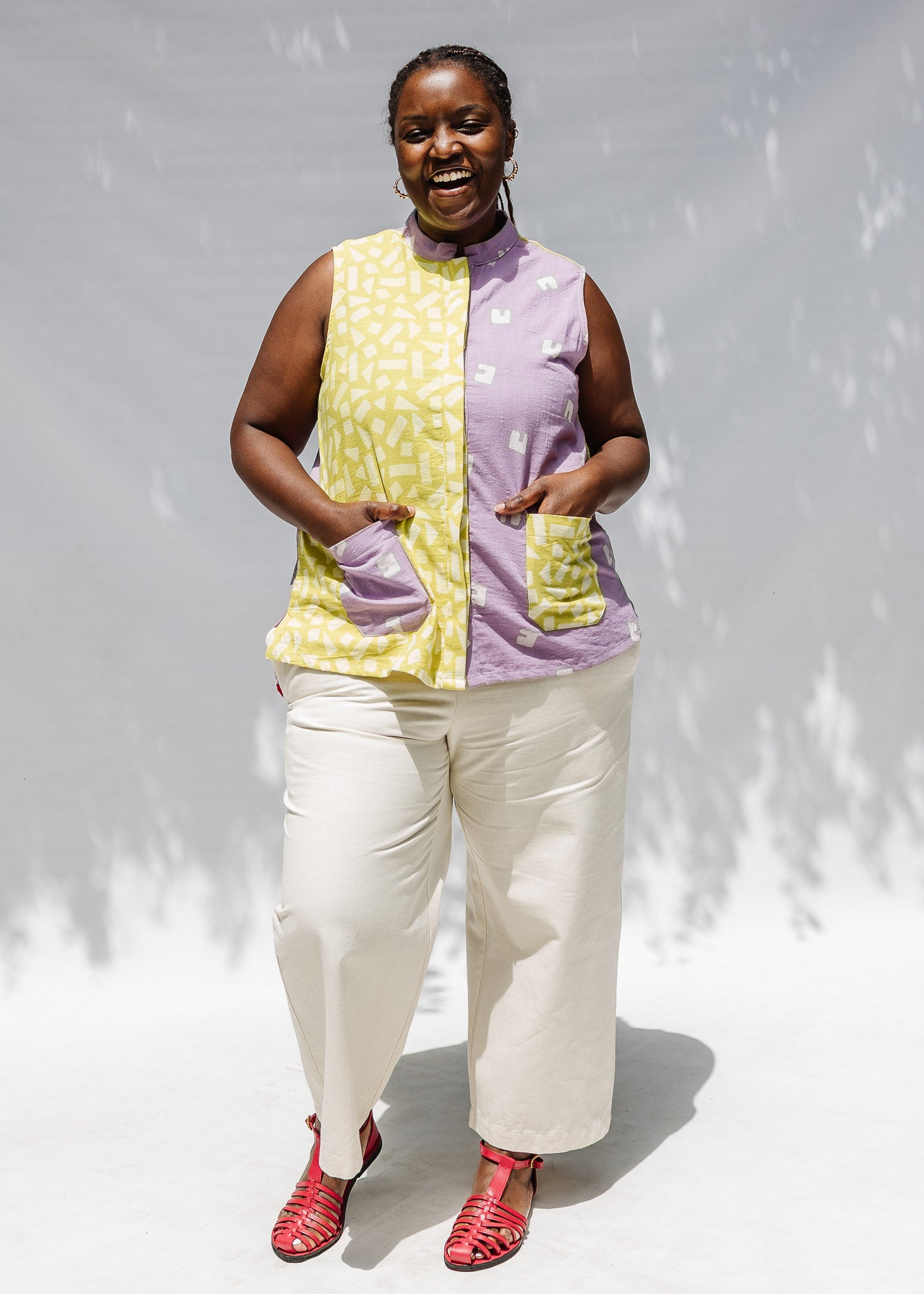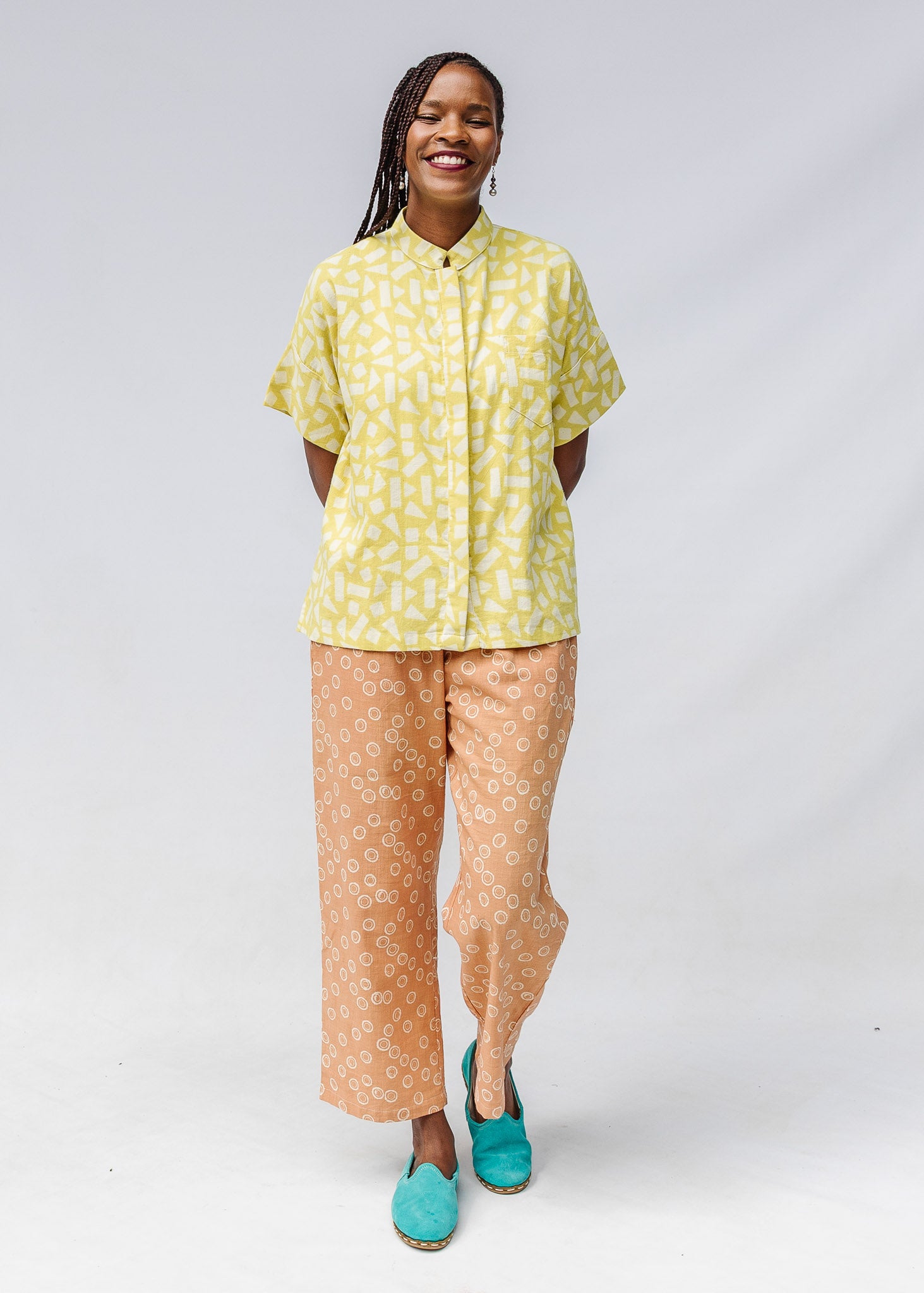 Our hand-loomed blend of cotton and linen textiles creates subtle texture and movement within the weave.  The textiles in this collection are 70% linen and 30% cotton, making them super easy to wash and wear, since they’re more wrinkle resistant, more durable, and drape a bit heavier when worn than pure linen.