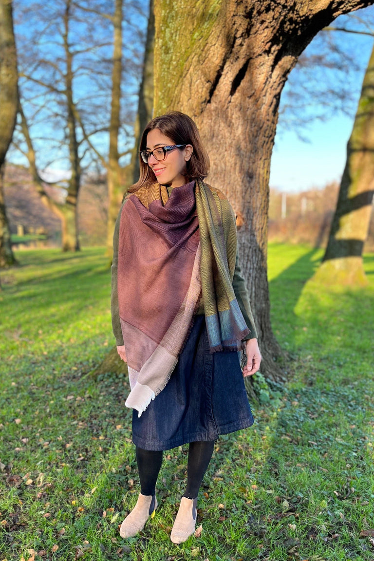 One Size: This versatile, one-size, sustainable wool Poncho Cape can be worn in 15 ways and more, making a stylish statement each time and every way in which you drape it. With exquisite and intricate hand detailing and finishing, this unbelievably multifunctional cape is sure to make heads turn. A meaningful gift to yourself and your loved ones.
