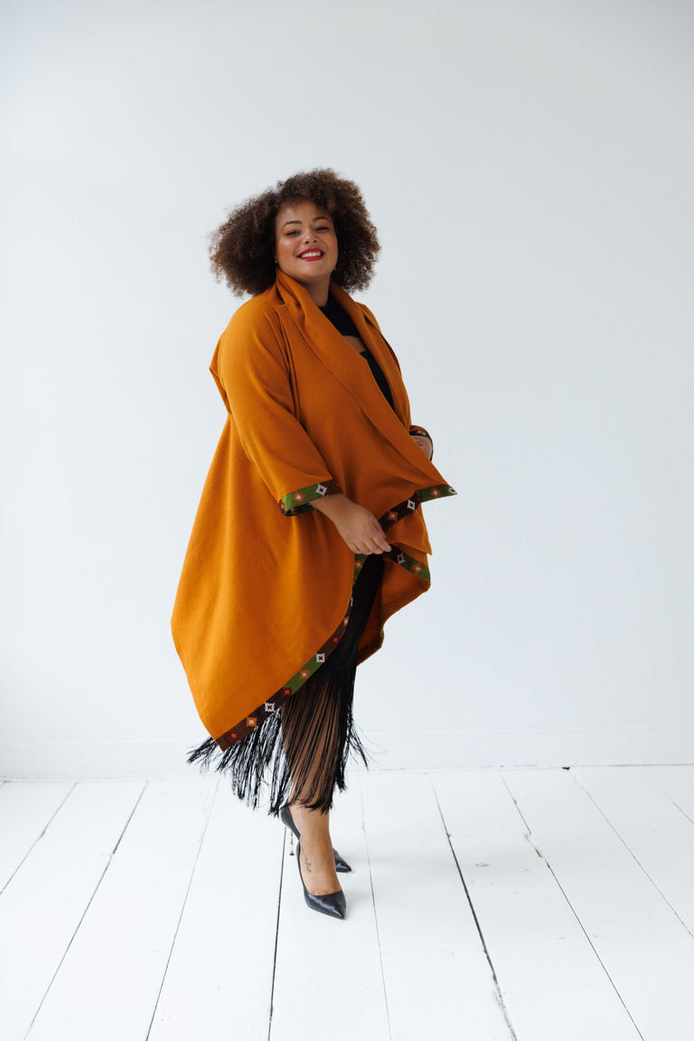 Traditional meets timeless: Equal parts of luxury and comfort, the Woolmark Certified JULAHAS Cape Coat Cocoon keeps you stylish and snug all season long. The multi-wear design allows you to wear it long, short, wrapped or belted to create many different looks. It’s so versatile and roomy that it can be layered over anything and everything; slide it on a dress, t-shirt and jeans, elevate your workwear or uplift a chunky knit.